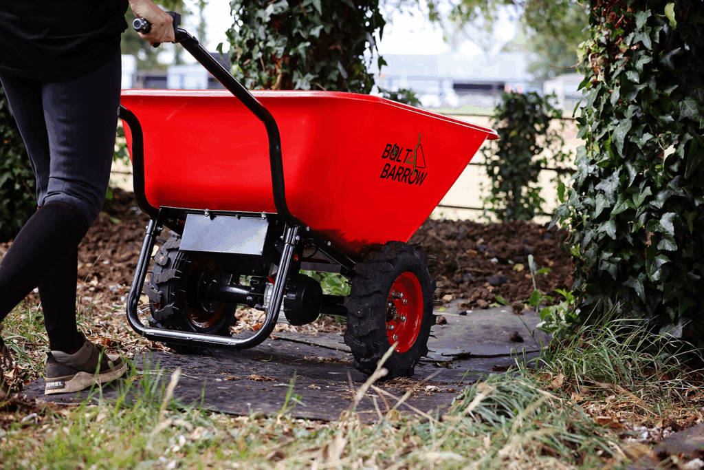 No fumes, no fuel—just plug in and go. The Bolt Barrow runs on a rechargeable electric motor, offering forward and reverse drive plus auto braking for slopes. It’s quiet, efficient, and ready whenever you are.